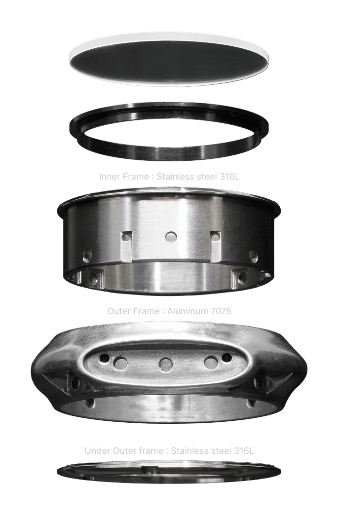 - Inner Case: Made of stainless steel 316L, polished